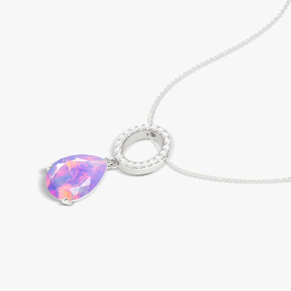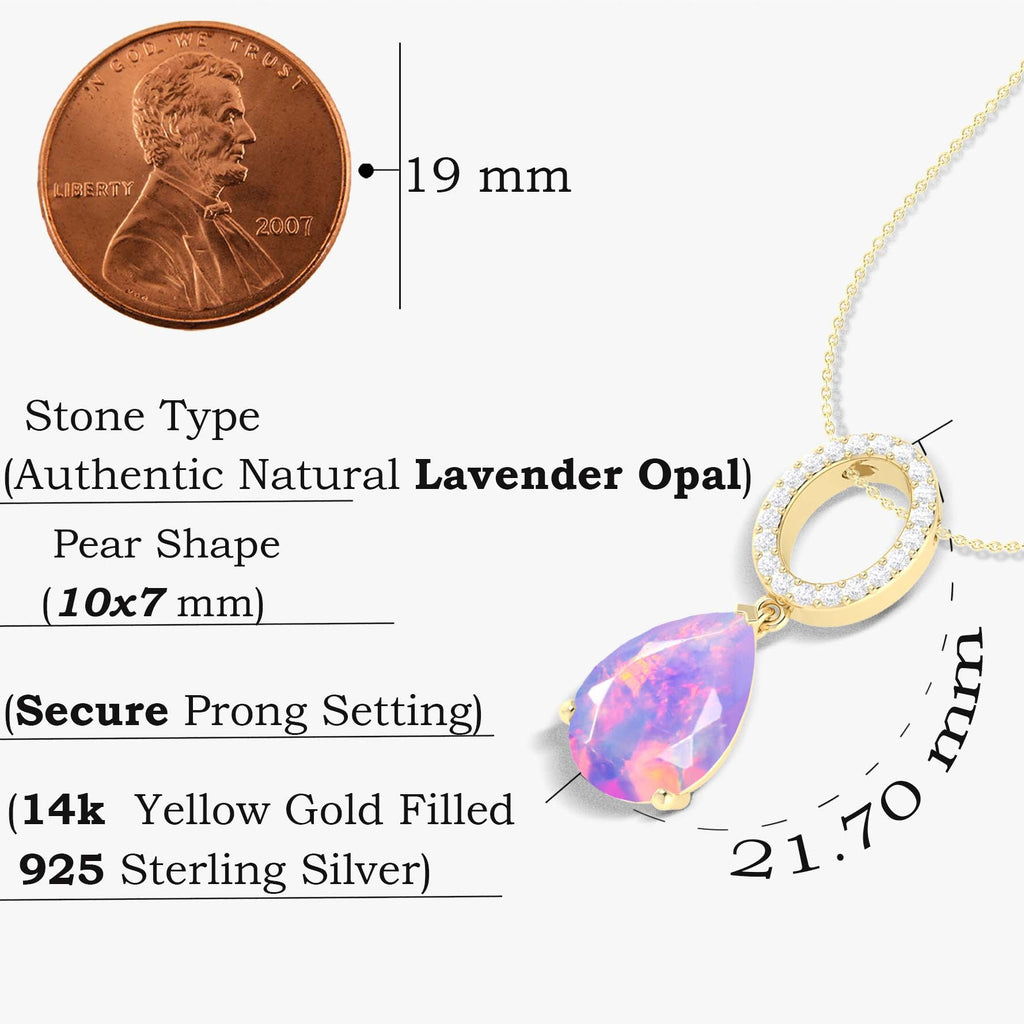Lavender OpalGOODSTONE JEWELS Single Pear Stone Pendant Necklace. Crafted with precision and care, this exquisite necklace features a genuine 10x7 mm pear-shaped natural lavender opal gemstone, gracefully set in 925 sterling silver and finished with yellow gold plating for a luxurious touch. Whether you're dressing up for a special occasion or adding a hint of sophistication to your everyday look, this necklace offers both versatility and style. The adjustable 16-inch cable chain with an additional 2-inch extender ensures the perfect fit, while the secure 1.80 gm lobster clasp keeps your necklace safely in place all day long. A perfect gift for birthdays, anniversaries, or just because this piece captures the beauty and mystery of lavender opal, known for its vibrant play of colors and distinctive appeal. Lightweight and durable, it offers lasting wear without compromising comfort.