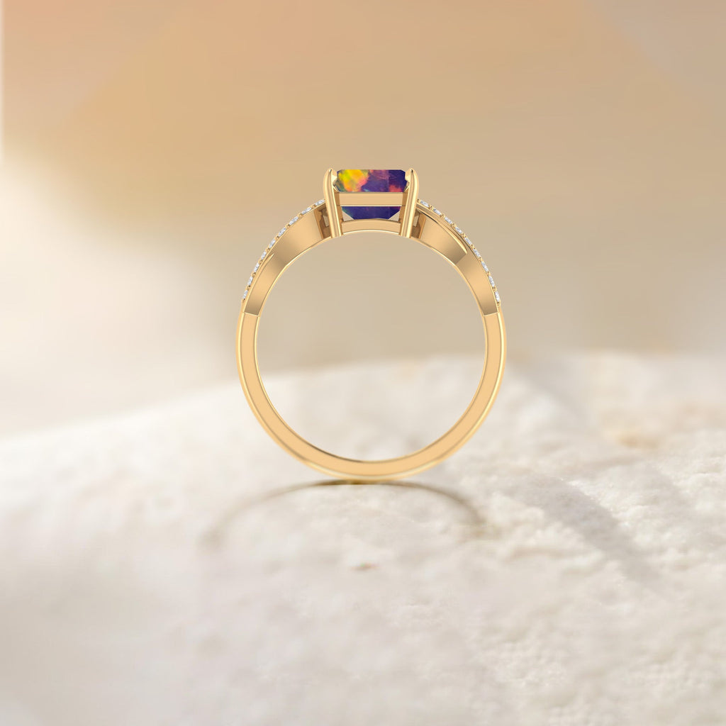 Black OpalNatural Black Opal 925 Sterling Silver Crossover Ring for Women. Elevate your jewelry collection with the breathtaking beauty of this Natural Black Opal Crossover Ring. Featuring a dazzling 7mm square-cut black opal gemstone weighing approximately 1.2 carats, this ring is a true masterpiece. Each stone showcases a stunning play of color, shifting hues with every glance, making it as unique as the woman who wears it. Expertly crafted from premium 925 sterling silver, this ring combines luxury with durability. The sleek band and bold square shape give it a modern, high-end appeal that complements any outfit, from everyday chic to evening glam. Whether you're shopping for yourself or searching for a meaningful gift, this elegant ring makes the perfect choice.