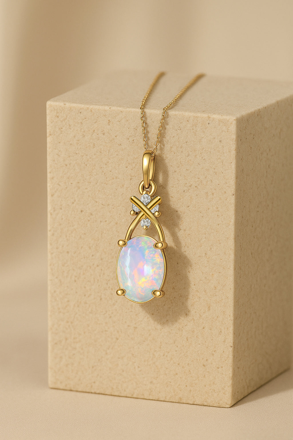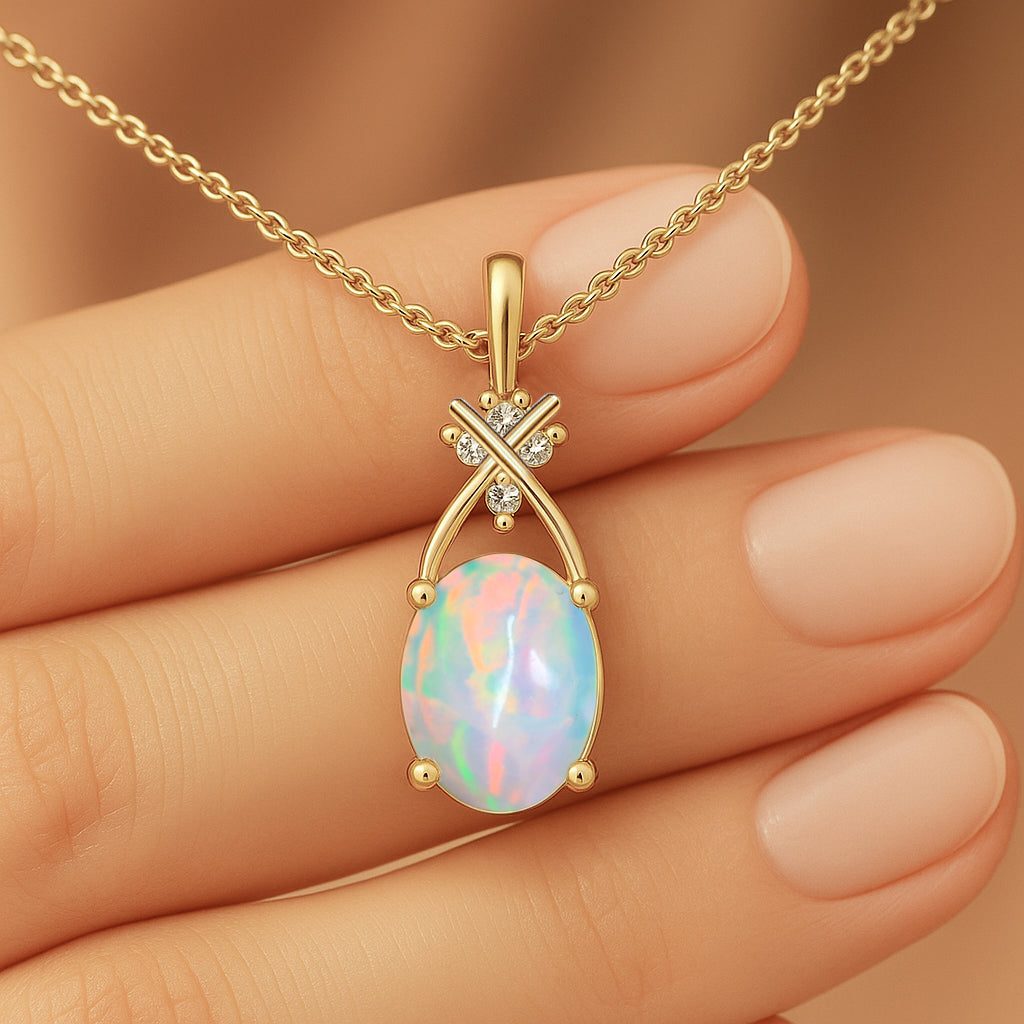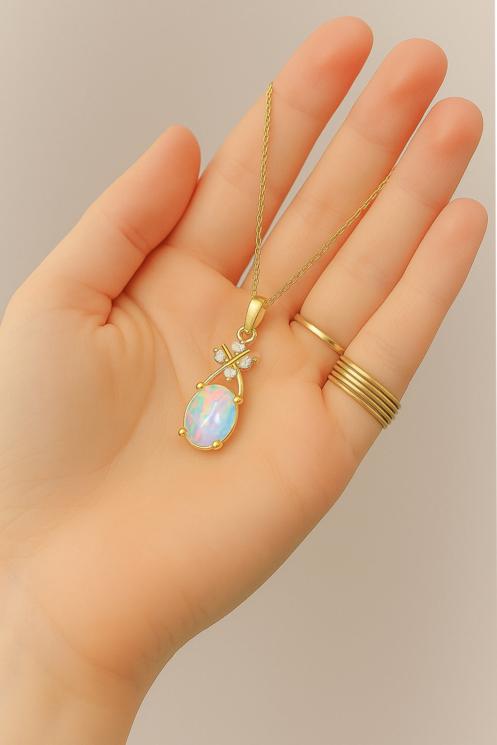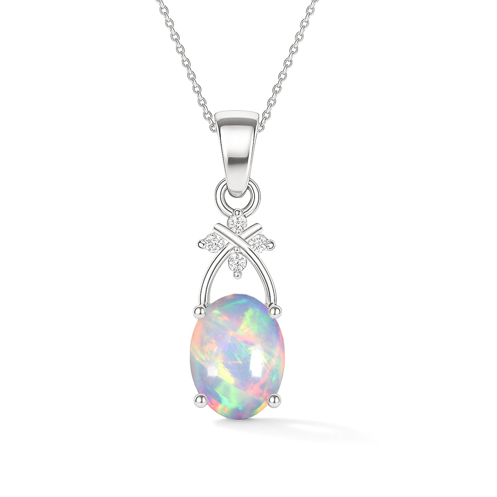 White OpalElevate your everyday style with this exquisite White Opal Oval Pendant Necklace, expertly crafted in 925 Sterling Silver. Featuring a luminous 9x7 mm smooth oval Opal (1.20 Ct), its natural iridescence creates a captivating play of colors that enhances any look. The elegant pendant measures 20.38 x 7.02 mm and is paired with a refined 16” + 2” adjustable cable chain secured with a lobster clasp for lasting comfort and durability. Lightweight at approximately 1.35 gm, this Opal necklace is perfect for gifting or adding a touch of luxury to your jewelry collection.