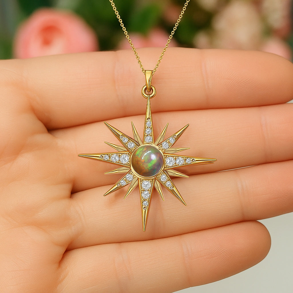 Black OpalElevate your elegance with our Black Opal Round Halo Pendant Necklace, expertly crafted in 925 Sterling Silver for a timeless, luxurious finish. Featuring a 5 mm smooth round Black Opal (0.50 ct) encircled by a radiant halo, this statement pendant measures 28.12 × 28.12 mm and hangs beautifully from a 16” + 2” cable chain with a secure lobster clasp. With an approximate weight of 2.85 gm, this opal necklace adds a touch of ethereal charm, making it perfect for daily sophistication or special occasions.