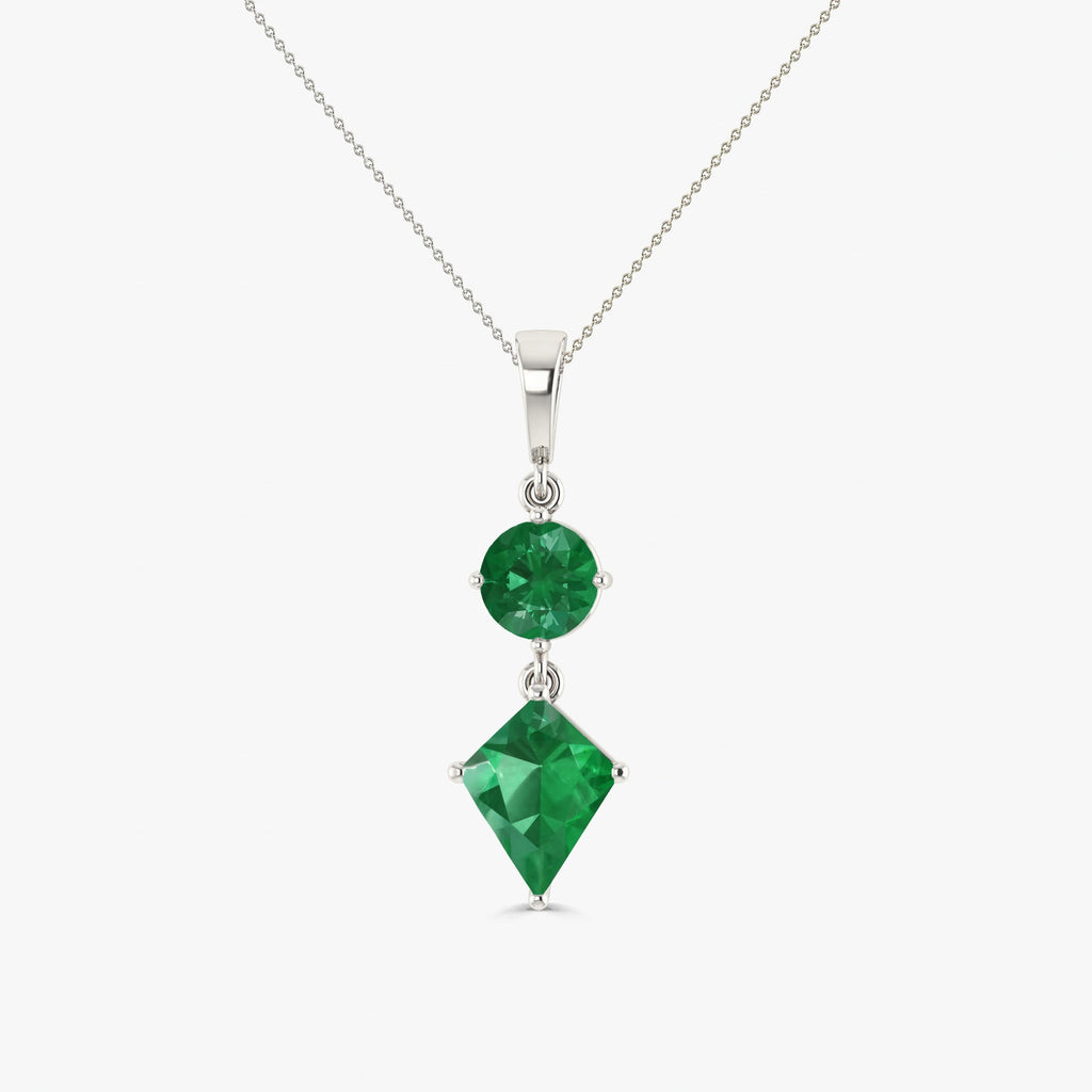 Green Lab Emerald jewelry for women, Minimalist Necklace, Green Lab Grown Kite and Round Shape Emerald stone pendant 18k Gold vermeil and 925 Sterling silver chain necklace.