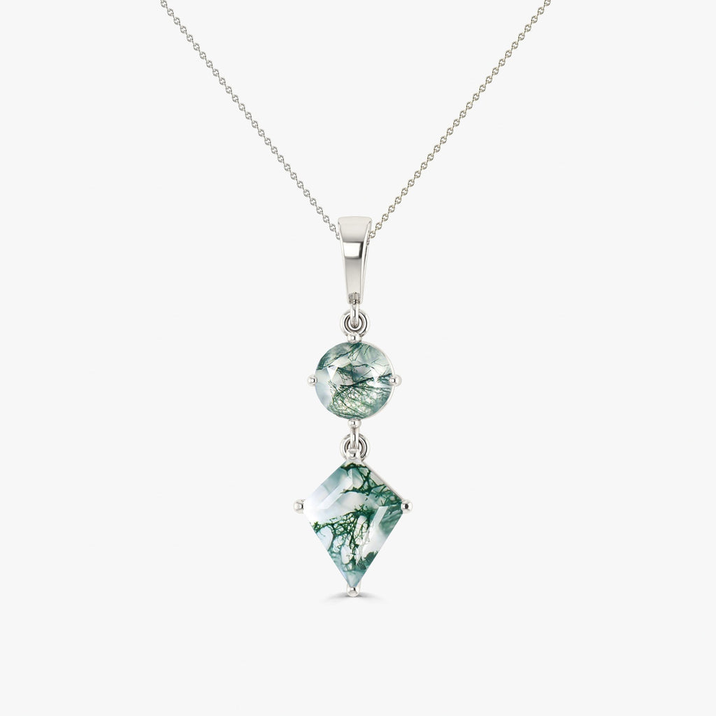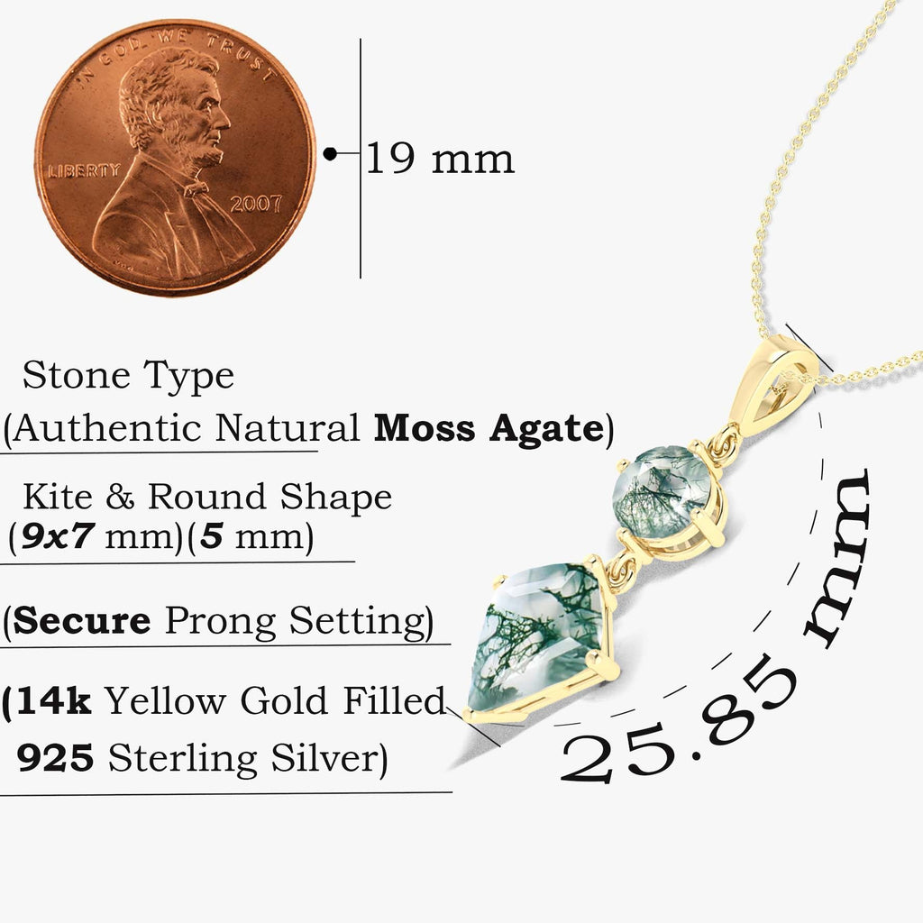 AAA Agate Pendant Gold Chain necklace, Kite and Round Moss Agate pendant chain necklace, 925 Sterling silver necklace, Gift for her.