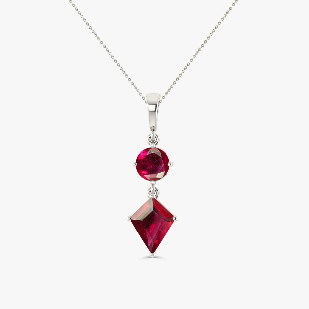 Kite and Round Ruby Pendant with Gold Vermeil and 925 Sterling silver chain necklace, Red Rose Ruby pendant necklace, Chain necklace.