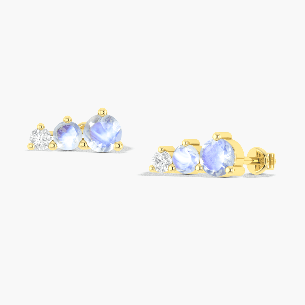 MoonstoneIntroducing the Moonstone Stud Earrings! This beautiful earring features a round of stunning moonstone and zircon gemstone. Wear it to add a touch of elegance and love to any outfit. Perfect for special occasions or everyday wear, this earring is sure to dazzle and delight.