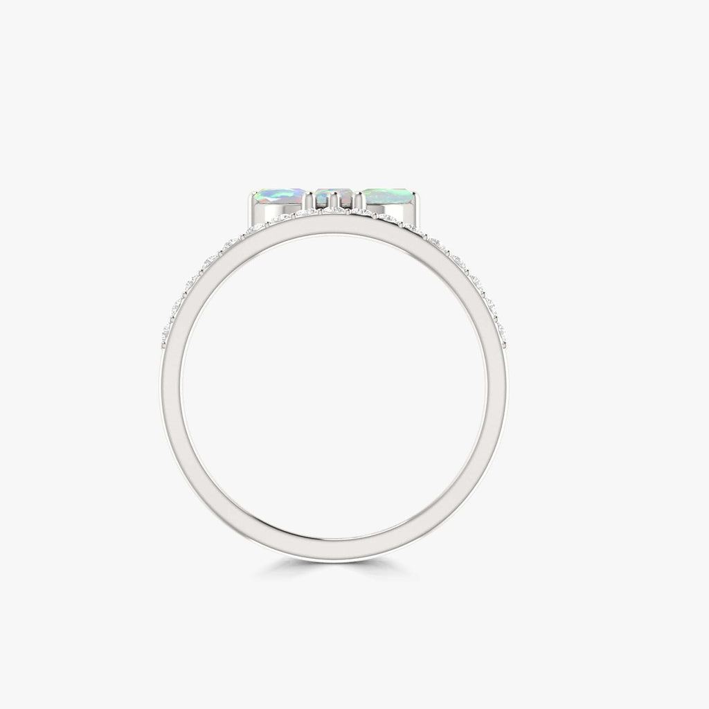 White OpalNatural White Opal Half Eternity with 3-Stone Ring expertly handcrafted in 925 sterling silver, this unique design features three genuine marquise-cut White opals, arranged in a graceful motif that symbolizes growth, renewal, and femininity. Each natural White opal sparkles with an enchanting play of color, making this ring a radiant expression of love and individuality. Whether you’re dressing up for a special occasion or adding charm to your everyday style, this ring delivers lasting brilliance and comfort. Made for sensitive skin, it’s hypoallergenic and nickel-free, ensuring a smooth and safe fit for daily wear.