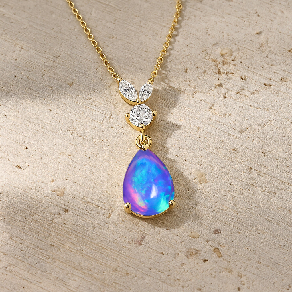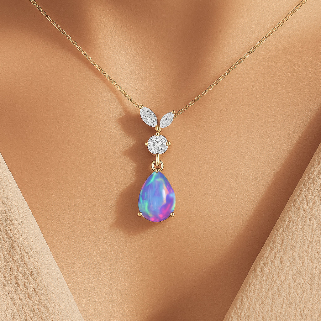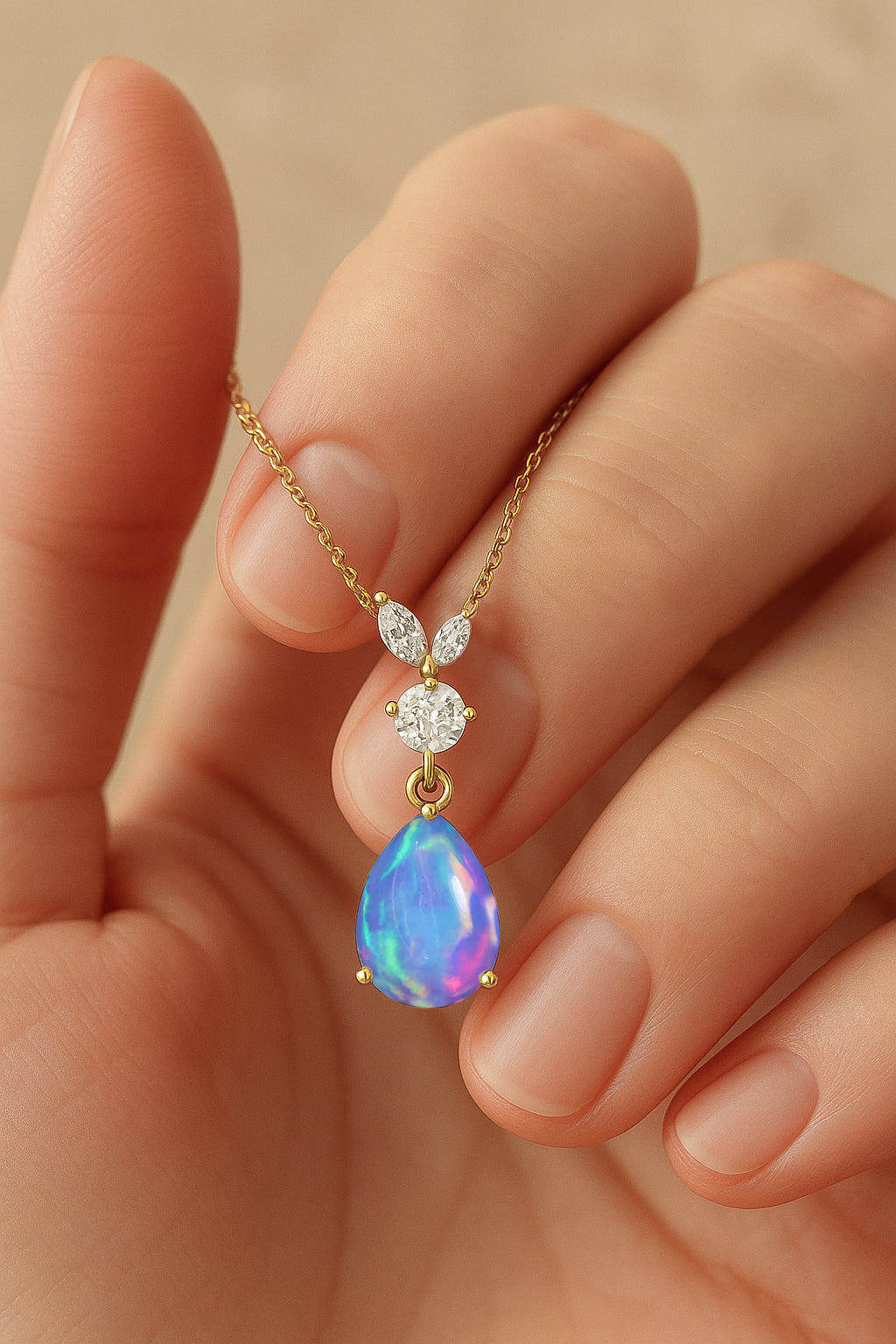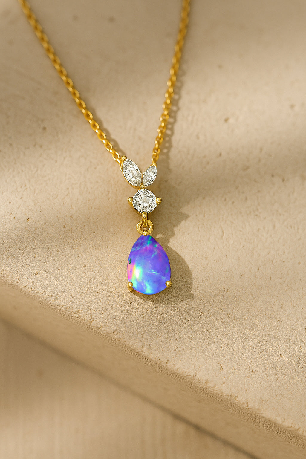 Lavender OpalAdd a touch of timeless grace with this Lavender Opal Pear Stone Teardrop Pendant Necklace, beautifully crafted in 925 sterling silver. The smooth 10x7 mm pear shaped opal (1.70 carat) radiates a soft, luminous glow, creating an elegant focal point for any look. Designed with a refined 21.06 x 7.31 mm pendant size, it hangs from a classic 16"+2" adjustable cable chain secured with a durable lobster clasp. Weighing approximately 1.70 gm, it offers a lightweight yet luxurious feel. Perfect for both everyday wear and special occasions, this pendant adds a serene, sophisticated charm to any jewelry collection.
