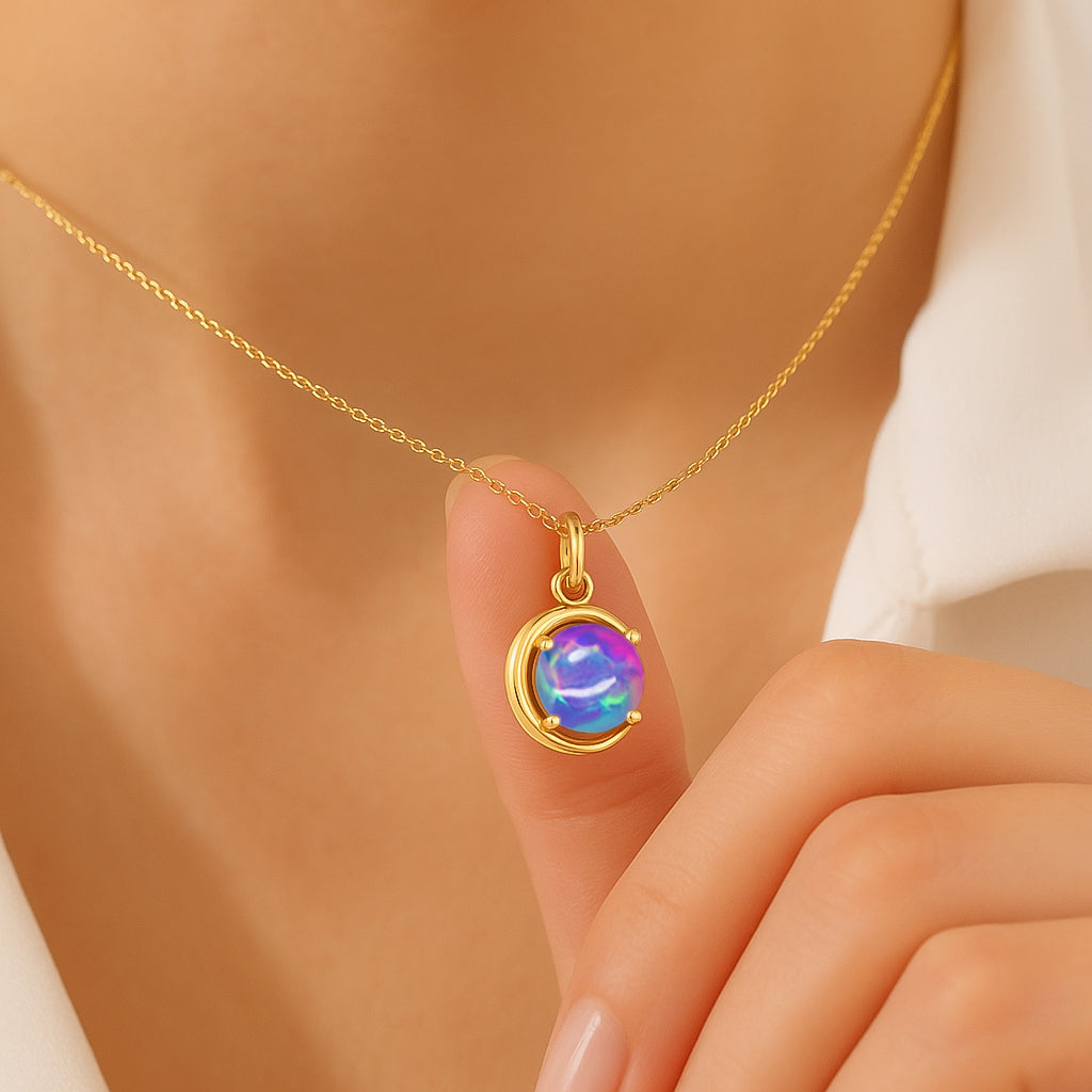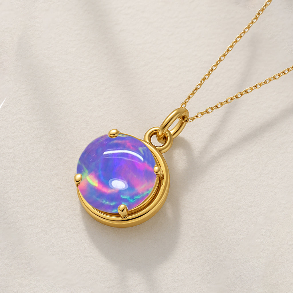 Lavender OpalAdd a touch of timeless elegance to your collection with this Lavender Opal Round Stone Pendant Necklace, beautifully crafted in premium 925 Sterling Silver. The smooth 8 mm round opal radiates a soft, luminous glow, offering a refined 1.6 carat presence that enhances any outfit. Designed in a sleek 13.28x10.07 mm setting, it hangs gracefully from a 16"+2" adjustable cable chain secured with a durable lobster clasp. Weighing approximately 1.45 gm, this lightweight yet luxurious piece is perfect for everyday wear or special occasions. Whether gifted or worn as a personal favorite, it brings a blend of sophistication and modern charm to any jewelry collection.