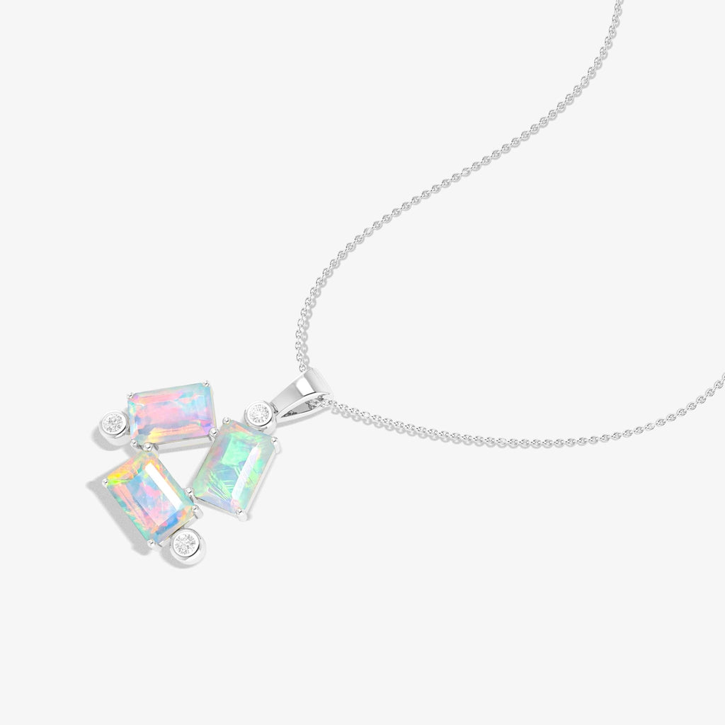 Introducing the White Opal Stone Charm Pendant! This beautiful necklace features three baguette gemstone of stunning white opal. Wear it to add a touch of elegance and love to any outfit. Perfect for special occasions or everyday wear, this pendant is sure to dazzle and delight.