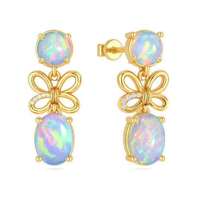 Add a touch of elegance and vibrant color to your look with these stunning white opal butterfly dangle earrings. Crafted in high-quality 925 sterling silver, each earring features two dazzling AAA white opal gemstones – a 6mm round cut and a 9x7mm oval cut – that radiate fiery flashes of green, blue, and red.