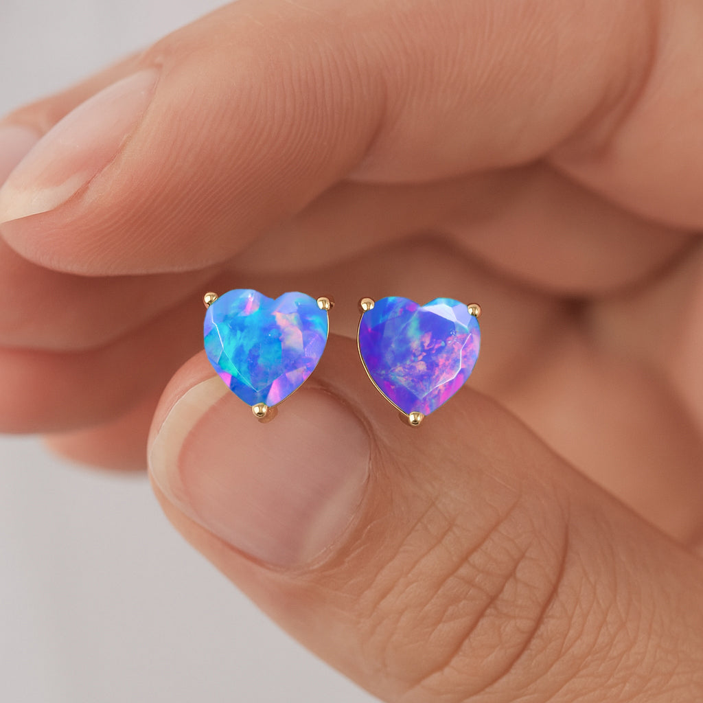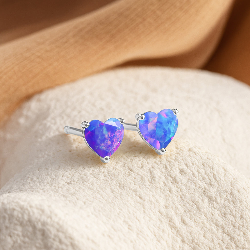 Lavender OpalElevate your everyday elegance with these Lavender Opal Heart Stud Earrings, beautifully crafted in 925 sterling silver. Each earring features a 5 mm heart-shaped lavender opal weighing 0.65 ct, offering a soft, iridescent glow. With a delicate size of 5.52 × 5.30 mm and an approx. weight of 0.47 g, they are lightweight, comfortable, and perfect for daily wear or gifting. A timeless symbol of love and serenity, designed to complement any style.