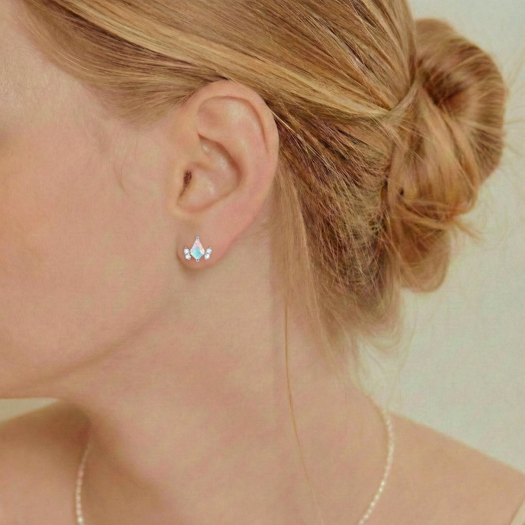 White Opal Kite Stud Earrings in 925 Sterling Silver 6x4 MM 1ct