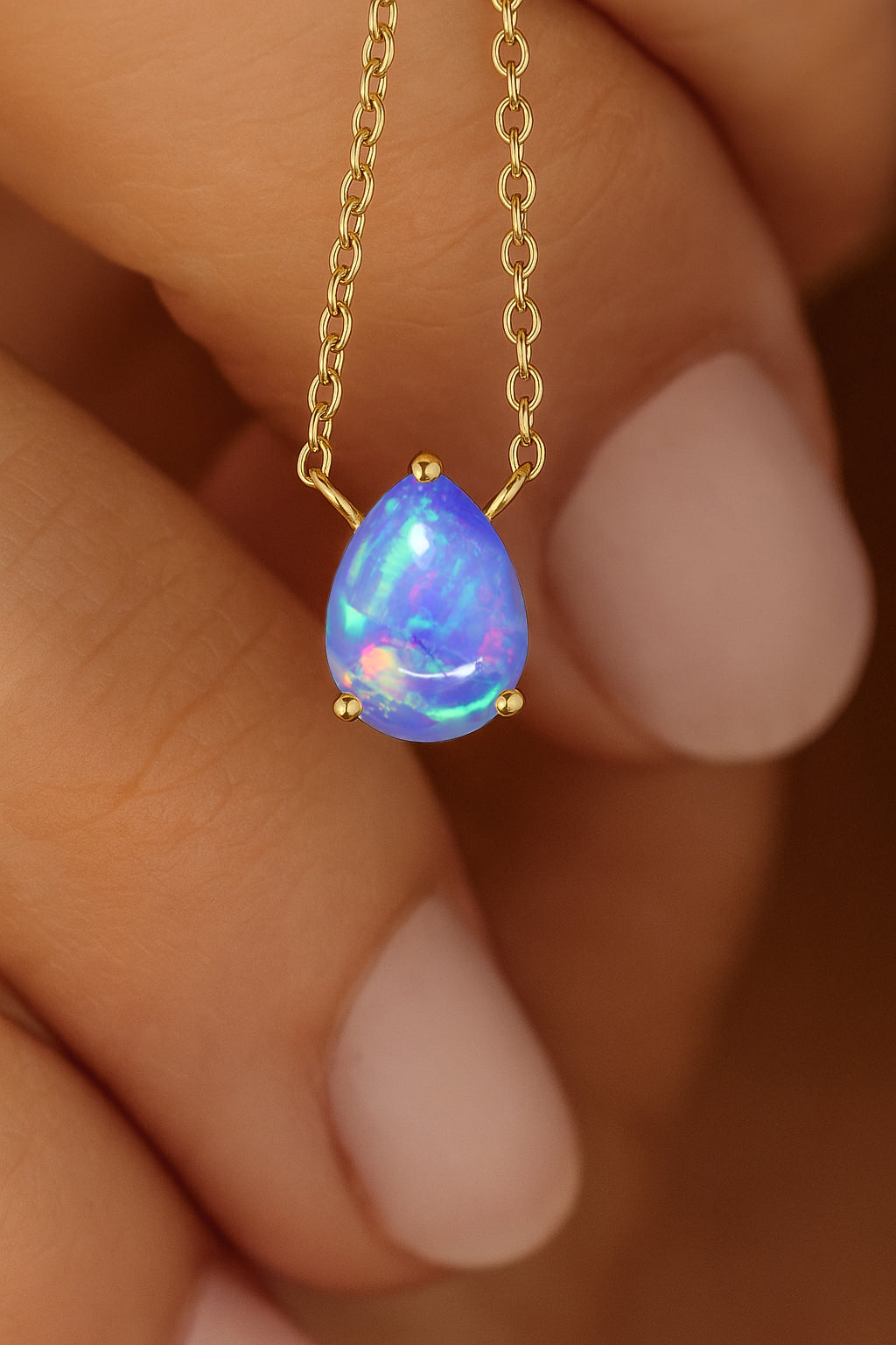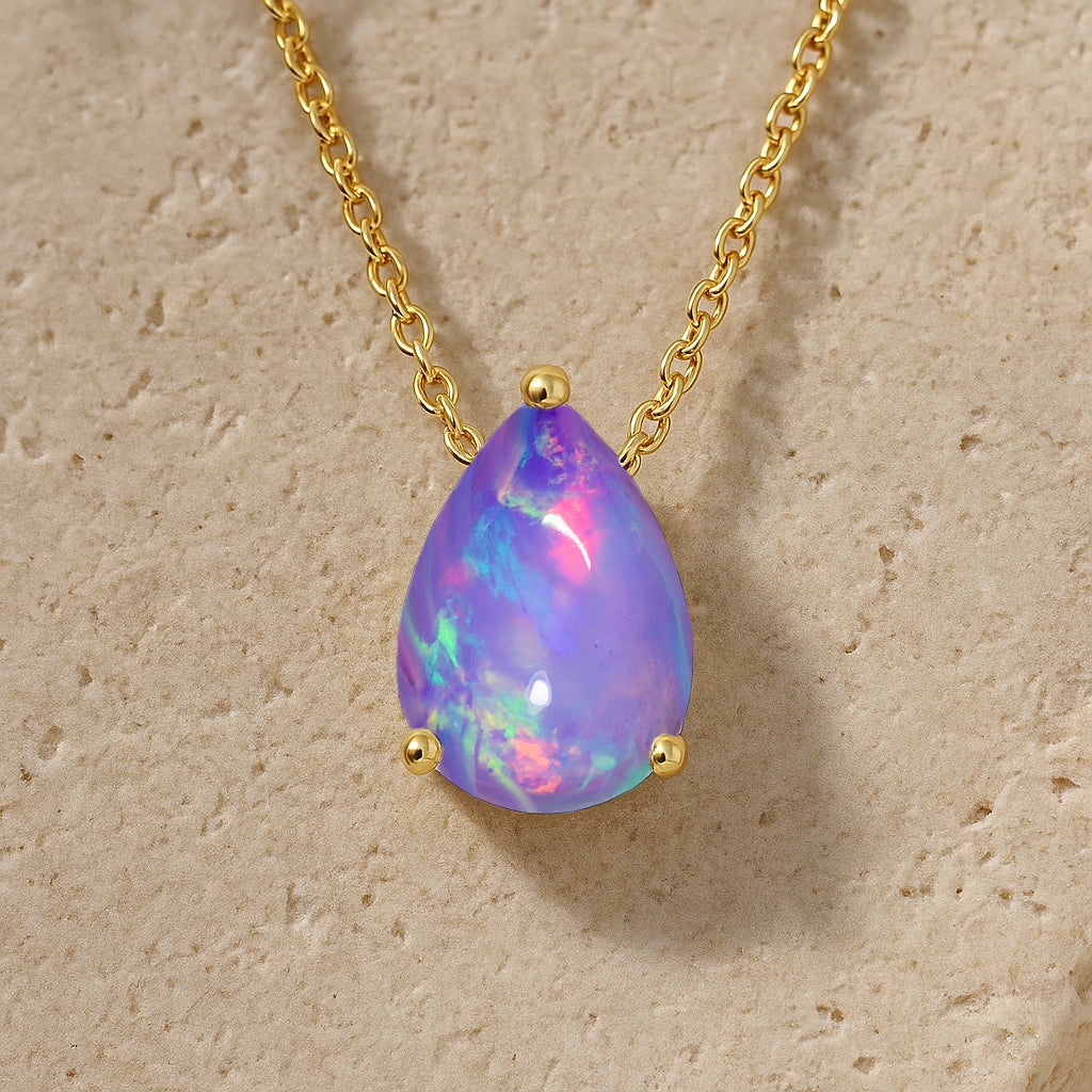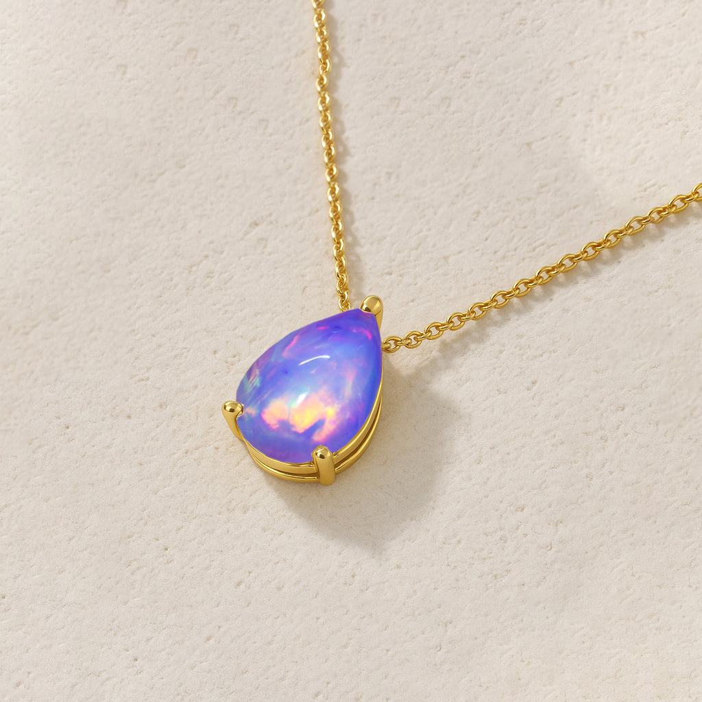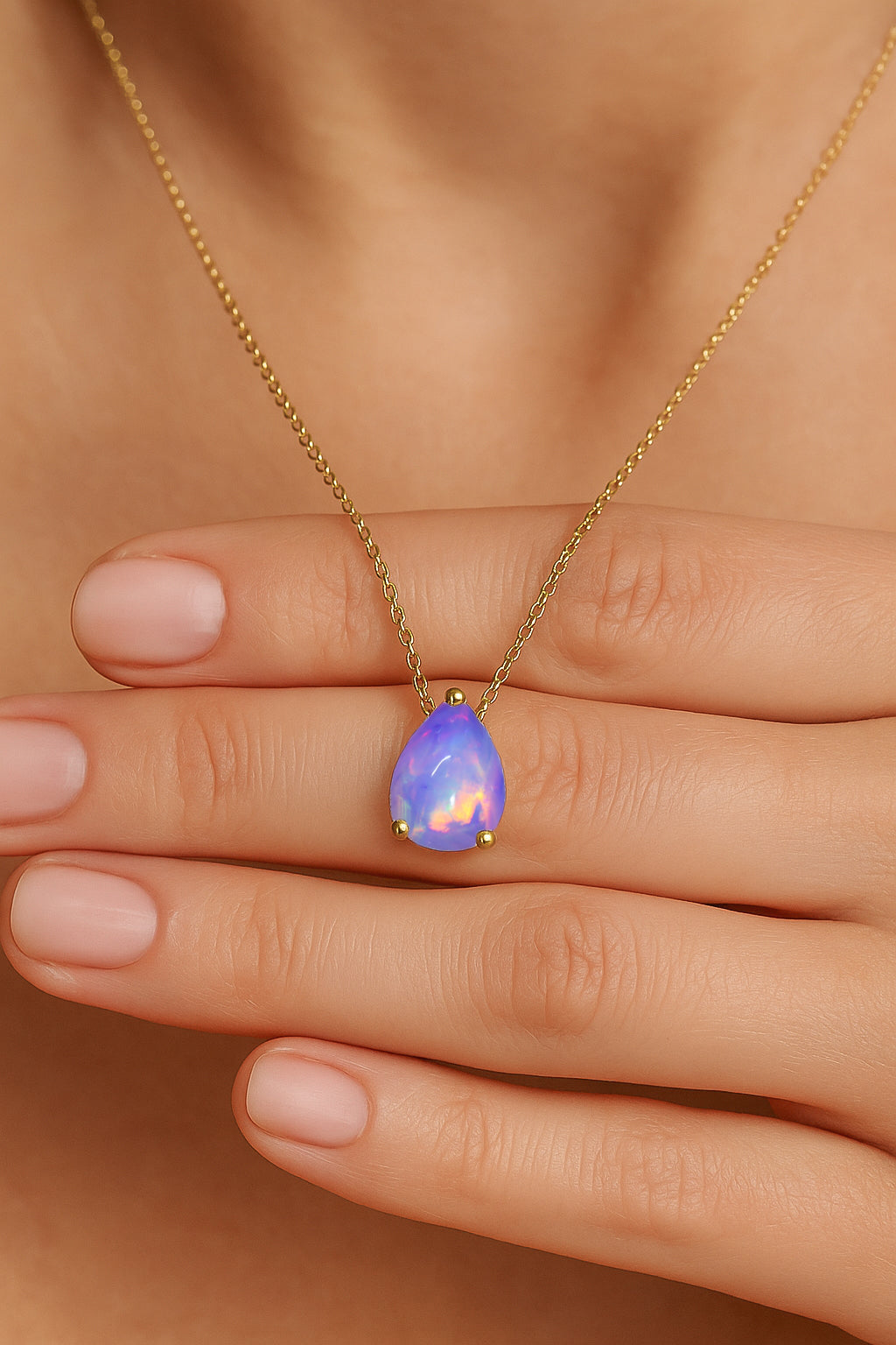 Lavender OpalThis elegant Lavender Opal Pear Stone Pendant Necklace beautifully crafted in 925 Sterling Silver. Featuring a smooth 8x6 mm pear-shaped opal weighing 0.9 carat, it radiates soft shimmer and timeless charm. The pendant measures 8.61x6.30 mm and hangs gracefully on a 16"+2" cable chain secured with a lobster clasp. Lightweight at approx. 0.80 gm, it offers a delicate yet striking touch perfect for gifting or daily wear.