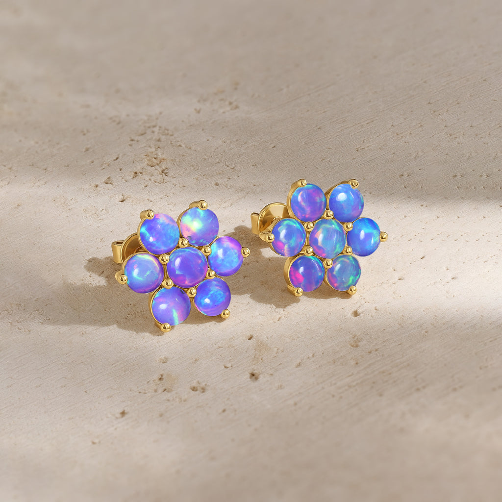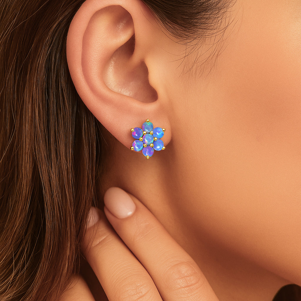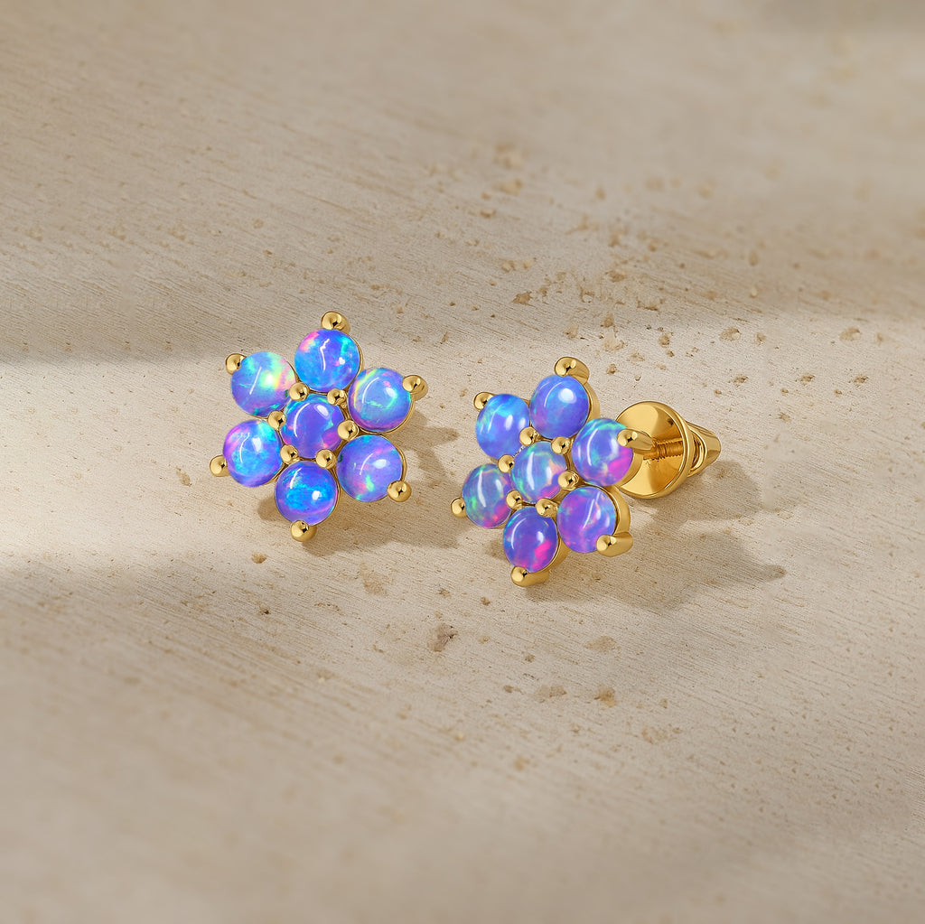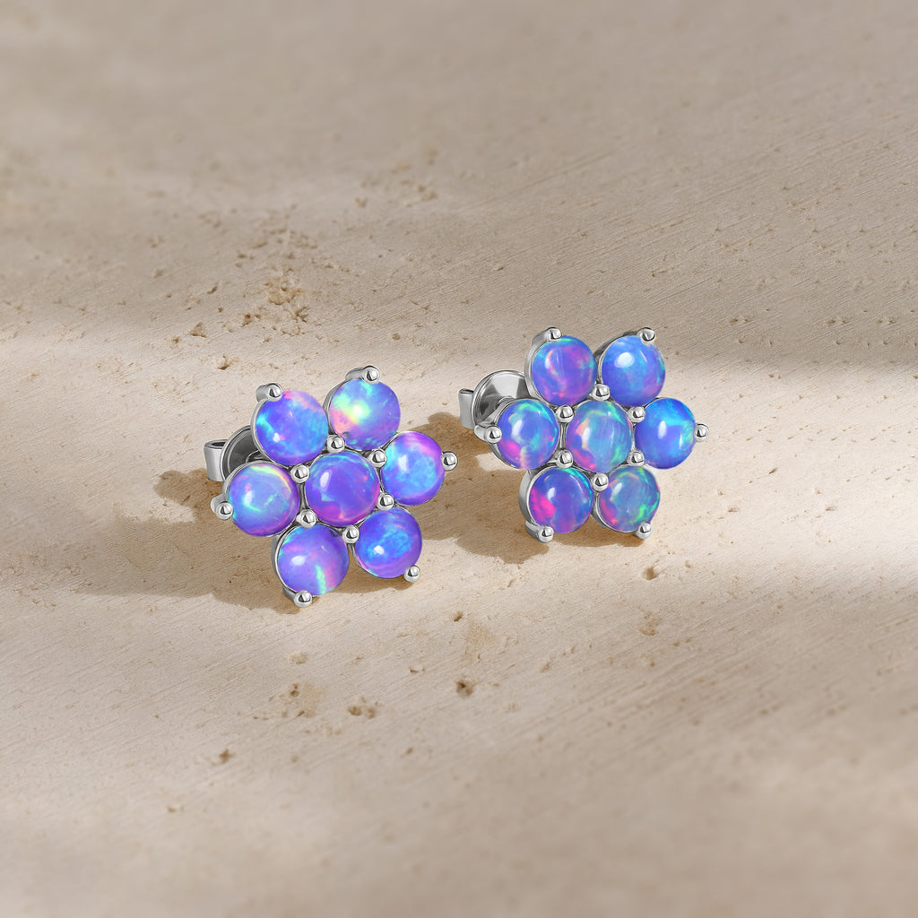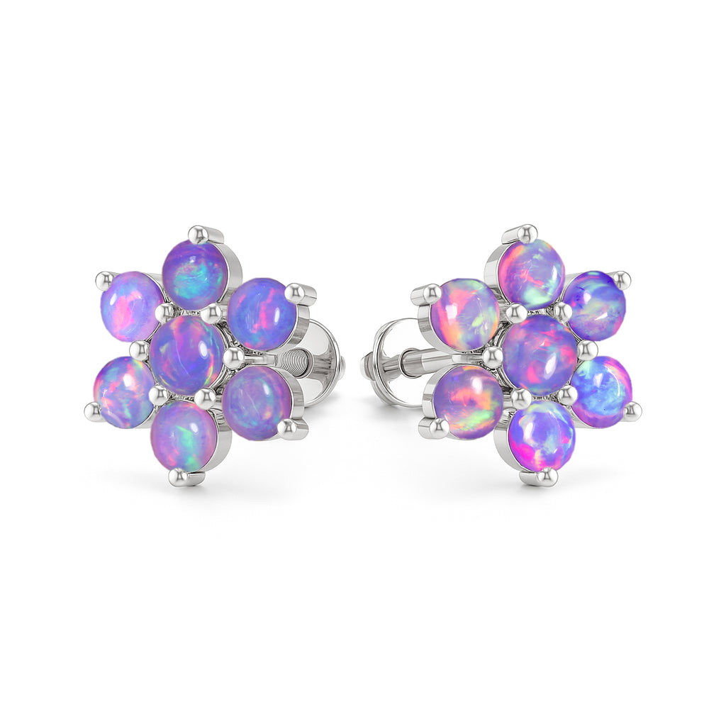 Lavender OpalElevate your everyday elegance with these Lavender Opal Round Stone Stud Earrings, beautifully crafted in 925 Sterling Silver. Featuring 14 smooth 3 mm round opal stones totaling 2.80 carats, each earring reflects a soft iridescent glow that enhances any look from casual chic to refined evening wear. With a size of 11.88 x 10.46 mm and a solid 3.60 gm build, these studs offer both durability and luxury. The high polish silver setting enhances the natural fire of the opal, making this pair a perfect gift for birthdays, anniversaries, or opal lovers. A timeless, luminous addition to your fine jewelry collection.