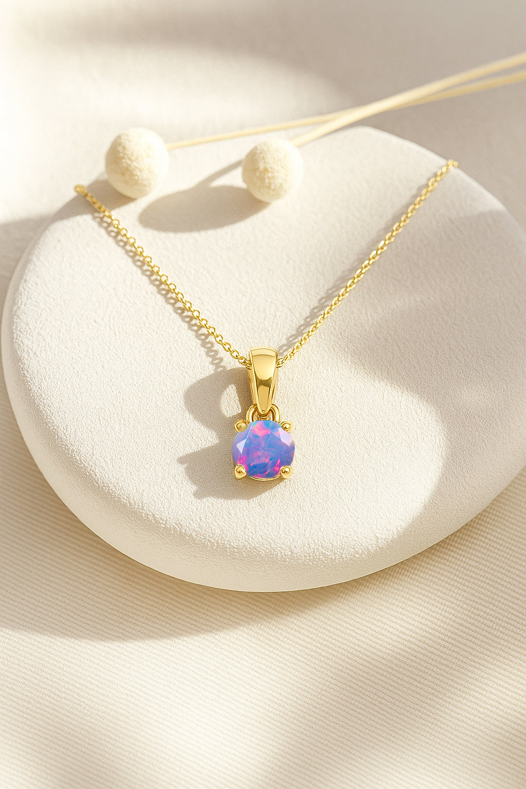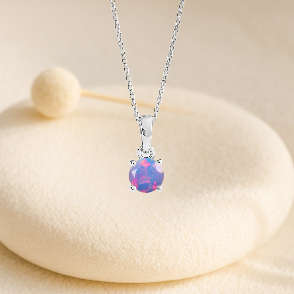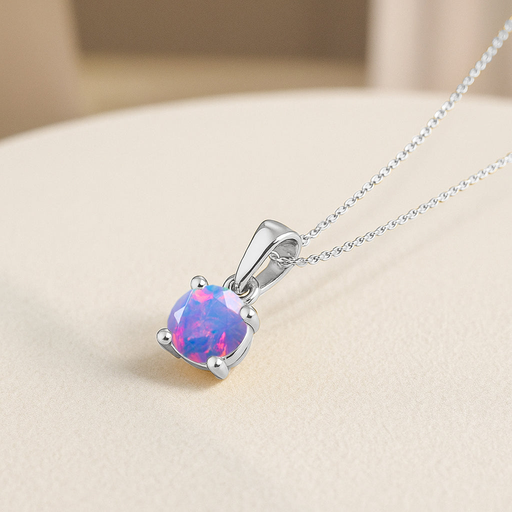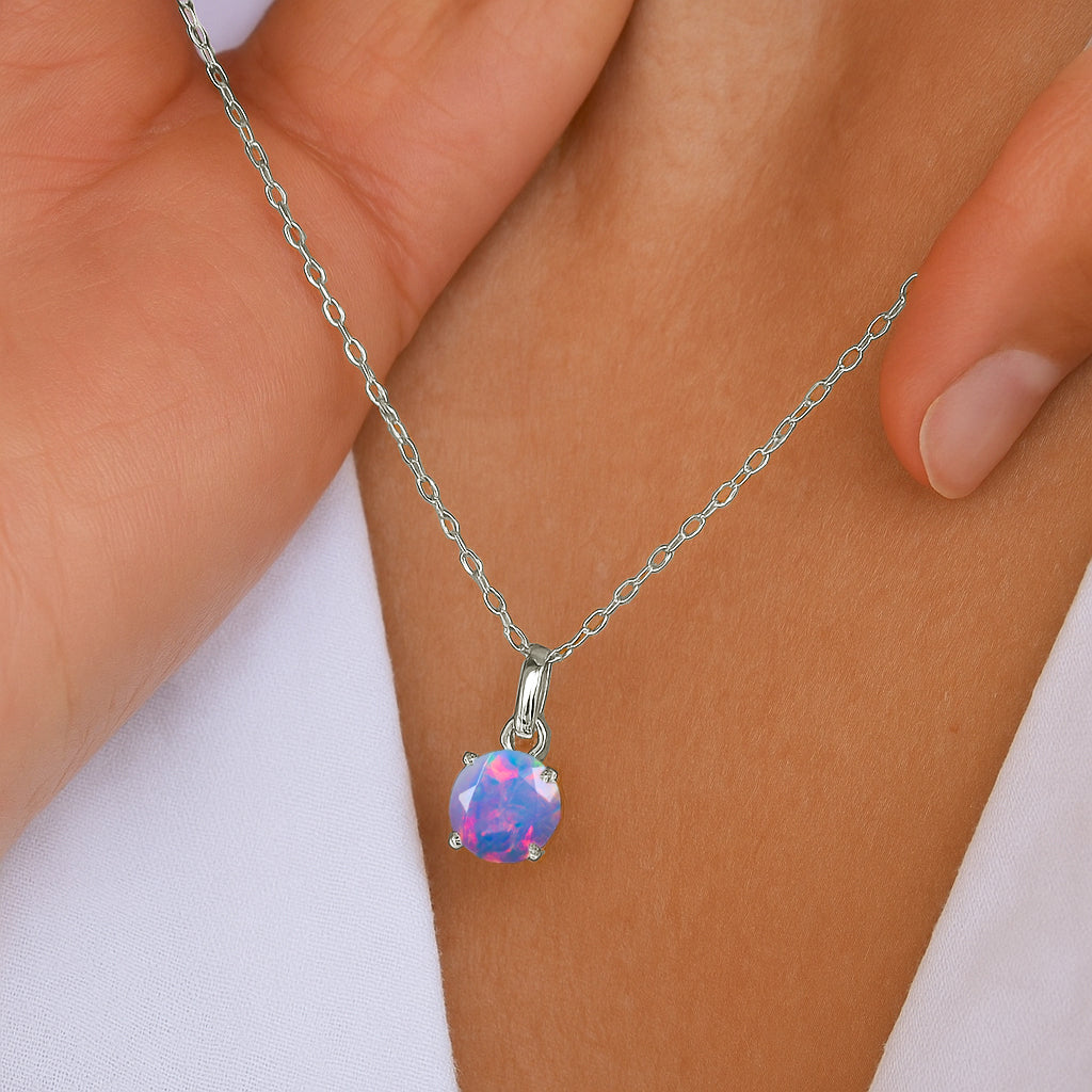 Lavender OpalAdd timeless elegance to your look with this Lavender Opal Round Teardrop Pendant Necklace, crafted in high-quality 925 sterling silver. The pendant features a faceted 7 mm round opal weighing 1.2 carat, showcasing its signature iridescent glow. Measuring 15.60×7.00 mm, it hangs delicately from a 16″ + 2″ adjustable cable chain for a perfect fit. With a lightweight 1.60 g design, this necklace brings a soft, luminous charm to any outfit ideal for both everyday wear and special occasions.