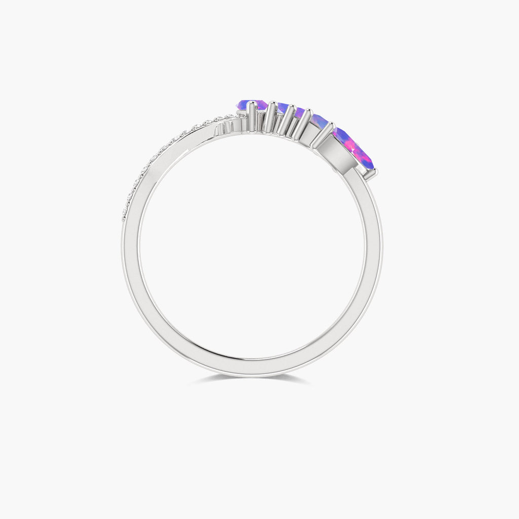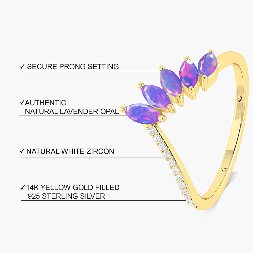 Lavender OpalNatural Lavender Opal Wishbone Ring crafted in genuine 925 sterling silver. Designed to celebrate nature's elegance, this ring features five marquise-cut Lavender opals. The shimmering stones form a graceful Wishbone motif symbolizing growth, renewal, and love. Perfect for any occasion, this versatile ring is ideal as a wedding band, promise ring, engagement ring, or anniversary gift. Whether you're surprising your wife, girlfriend, mother, or best friend, it makes a heartfelt birthstone jewelry gift for her that she’ll treasure forever.